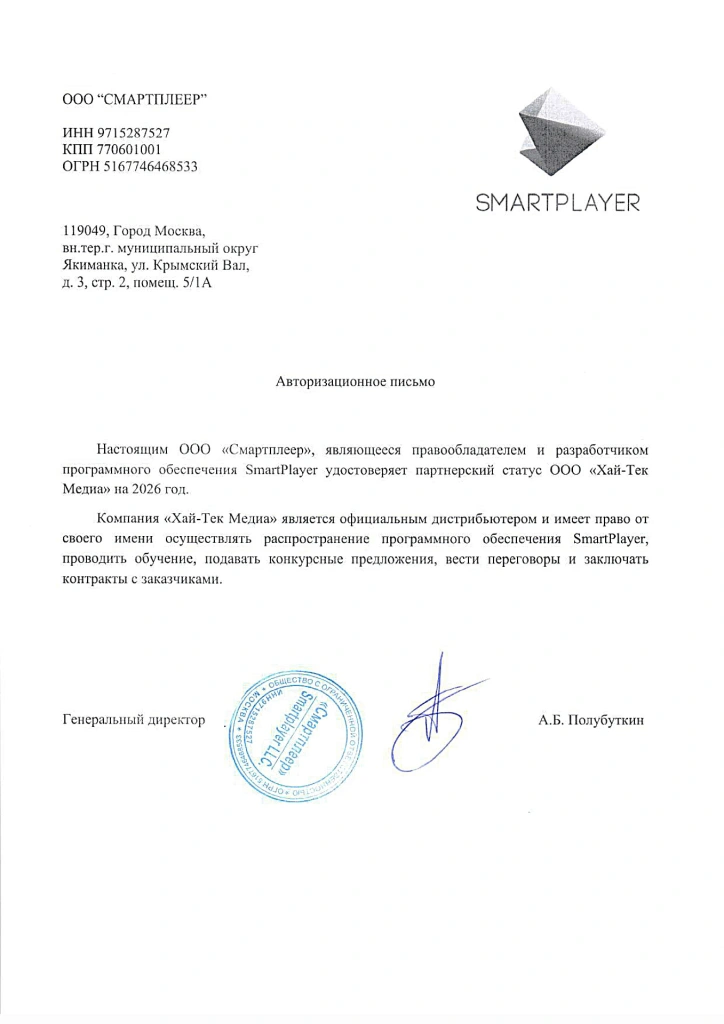 Программное обеспечение SmartPlayer в 2021 году было внесено в единый реестр российского ПО, рекомендуемого к использованию государственными структурами.- О бренде