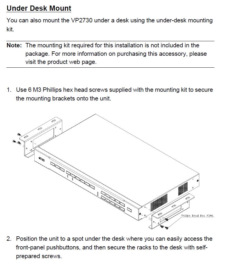 Для удобства установки компания ATEN предлагает монтажный комплект, позволяющий установить презентационный коммутатор под поверхностью стола.