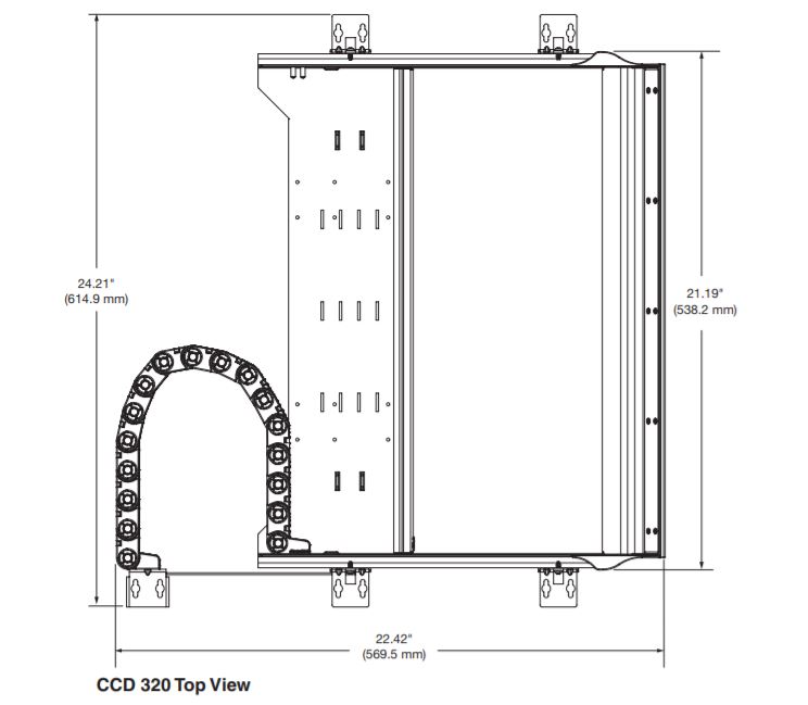 - Встроенная кабельная трасса обеспечивает простую проводку кабелей между монтажной поверхностью и напольным лючком