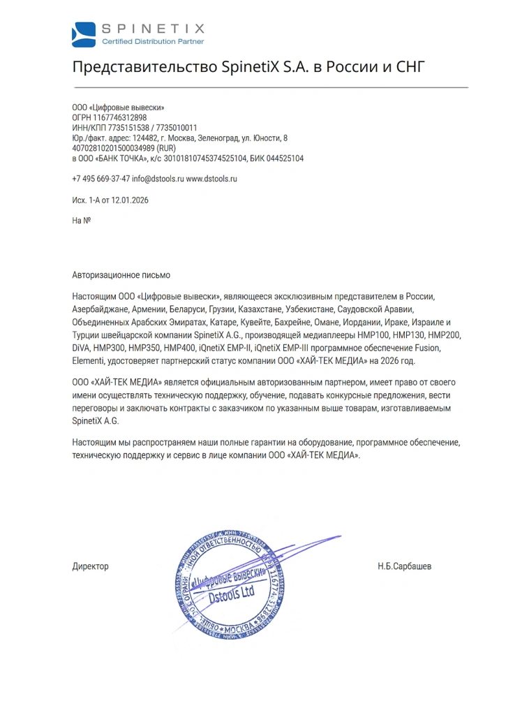 Spinetix ─ сертификат, 2026