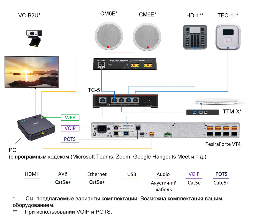 - Взаимодействие с программными кодеками, таким как Microsoft Skype, Google Hangouts, Cisco Webex, GoToMeeting и любыми другими.