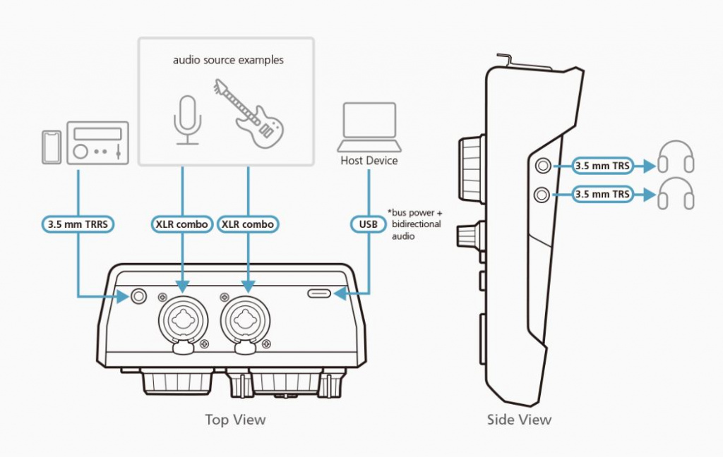 Благодаря двум комбинированным разъемам (XLR/6,3 мм для микрофона или инструментов), поддержке фантомного питания и предусилителю студийного уровня, Вы можете подключать конденсаторные микрофоны профессионального уровня и любые инструменты. И вы получаете кристально чистый сигнал с низким уровнем шума с высококачественным воспроизведением и записью 24 бит/96 кГц. Два выхода на наушники, каждый с отдельным регулятором громкости, позволяют вести мониторинг вдвоем. Благодаря входу TRRS 3,5 мм, Вы можете легко принимать звонки или воспроизводить фоновую музыку со смартфона.