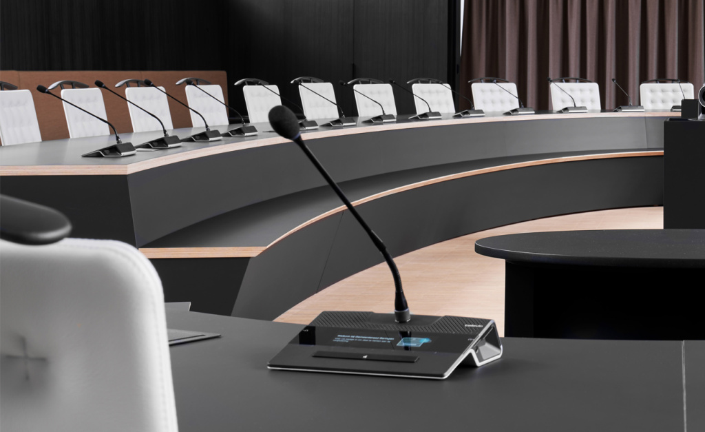 - Пульты (Delegate/Chairman Units): Универсальные настольные устройства с сенсорным экраном.
