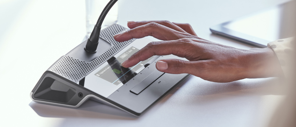 - Удобное управление и продуманный дизайн. Сенсорный 5,2-дюймовый экран отображает актуальную информацию во время совещания — повестку дня, список спикеров, результаты голосования и многое другое. Для особых функций, например, голосования, дисплей имеет тактильную обратную связь.
