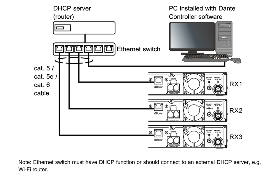 Цифровые приемники ACT-828/848 и аналоговые приемники ACT-727/747/525/545 компании MIPRO могут быть оснащены интерфейсом Dante. Используя кабель со скоростью 100 Мбит/с, он может передавать на максимальное расстояние 100 метров, а благодаря пакетной технологии и технологии TDM один сетевой кабель теперь может передавать несколько каналов аудиосигнала. Кроме того, с Dante Controller маршрутизация и мониторинг аудиопотока теперь стали простой задачей.