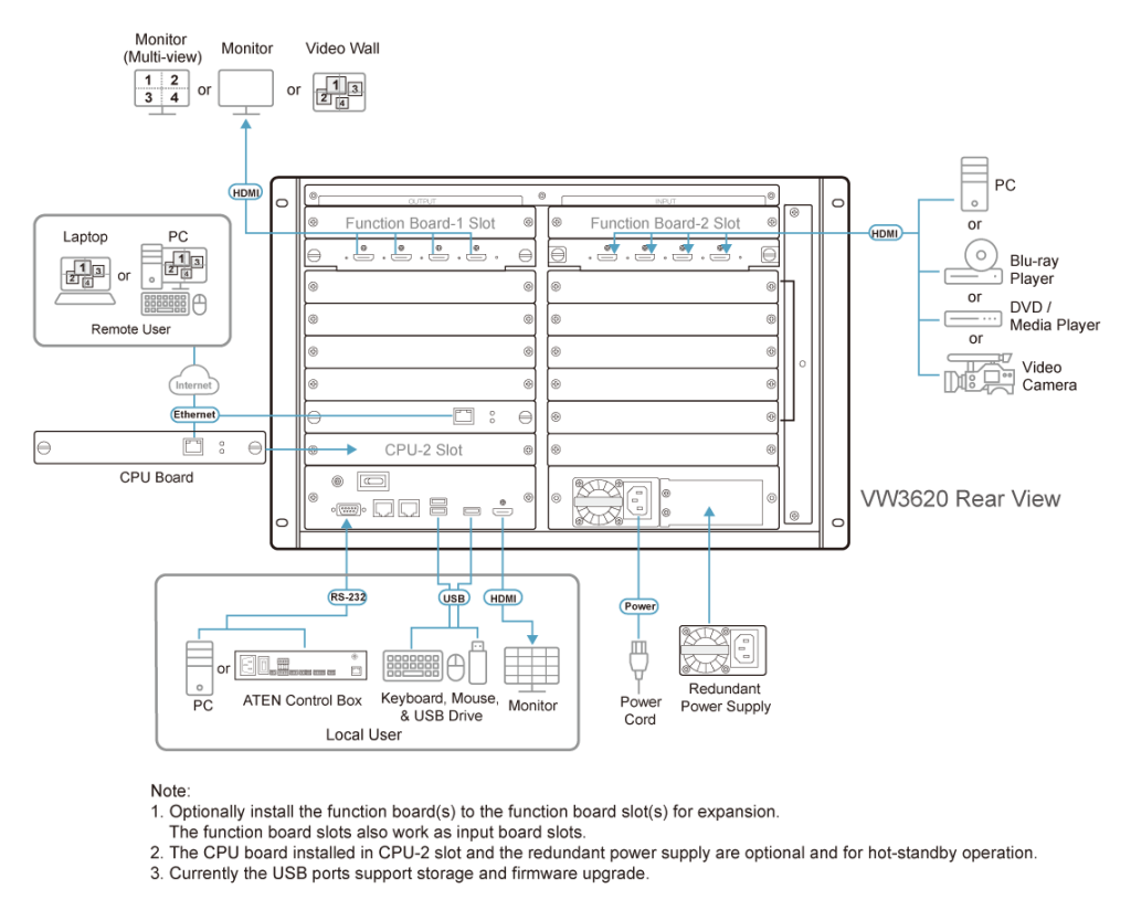 Благодаря передовой технологии компании ATEN для управления окнами, VW3620 поддерживает несколько видеостен с различным разрешением. Функциональность размещения окон практически не имеет ограничений, позволяя обрезать исходный текст, накладывать их друг на друга и многое другое для отображения каждой важной информации в индивидуальном виде. Возможности добавления логотипов компаний, цветовых схем, календаря, часов и текста с прокруткой, значительно расширяет области применение видеостен. Кроме того, VW3620 может быть сконфигурирован и управляться различными способами: кнопками на передней панели, по подключению через RS-232 и Ethernet с использованием веб-интерфейс и RESTful API. Интеграция с системой управления ATEN и устройствами сторонних производителей также возможна через интерфейсы RS232 и Ethernet, с поддержкой RESTful API.