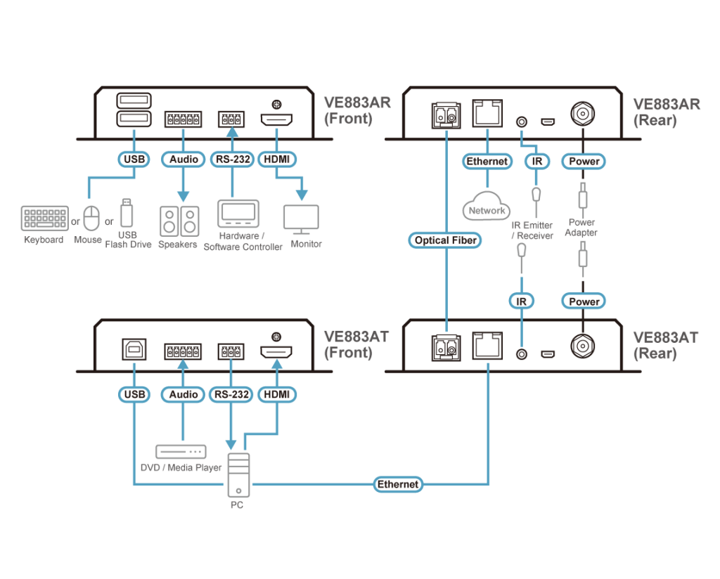 - 1x VE883AT оптический передатчик True 4K HDMI